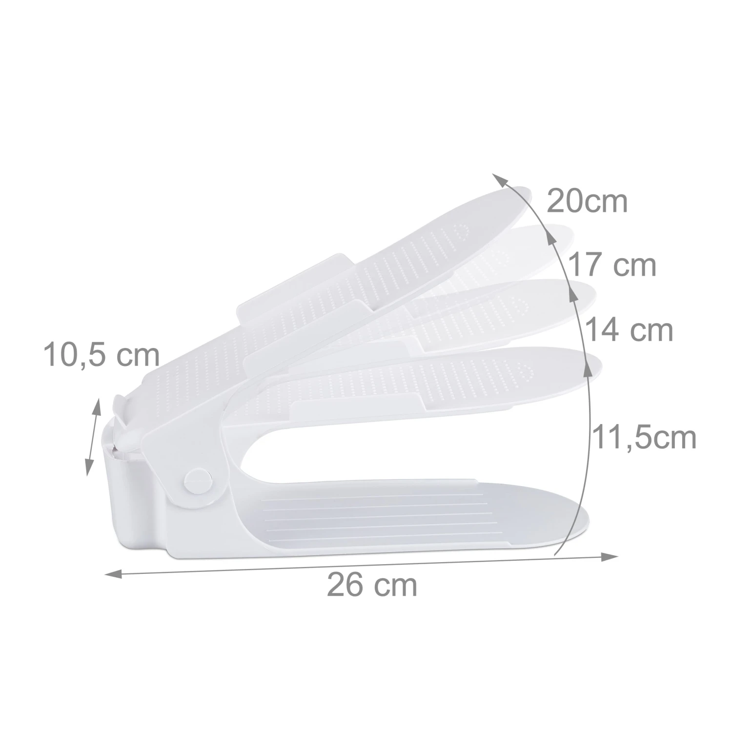 Diese Schuhstapler sind die idealen Ordnungshelfer im Eingangsbereich für Damen. Auf einer höhenverstellbaren Fläche mit Rutschsicherung können Schuhe einwandfrei gelagert werden. Dabei verschmutzen durch die Ablage weder der Boden, noch werden andere Schuhe durch Schmutz beschädigt.
