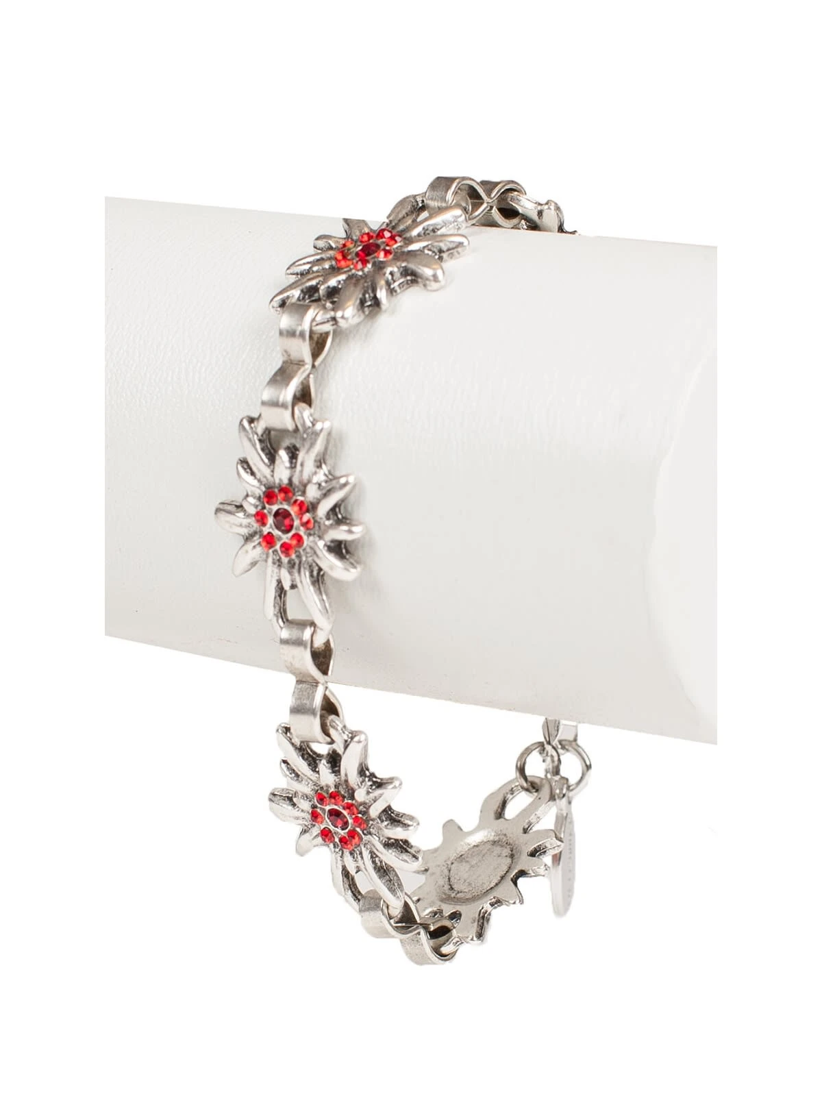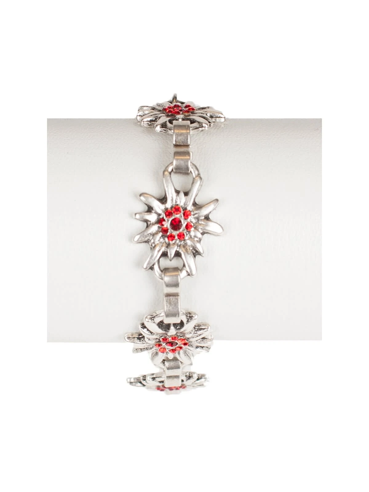 Rot – die Farbe der Liebe. Die Armkette aus dem Hause Schuhmacher ist aus Metall gefertigt und misst 18 bis 25 Zentimeter. Verziert ist sie mit kleinen Steinen, die in der Farbe der Liebe – Rot – gehalten sind. Dadurch bekommt die Armkette eine besondere Wirkung und setzt deutliche Statements.•Trachtenarmband •Länge ca. 18- 25 cm •Schuhmacher