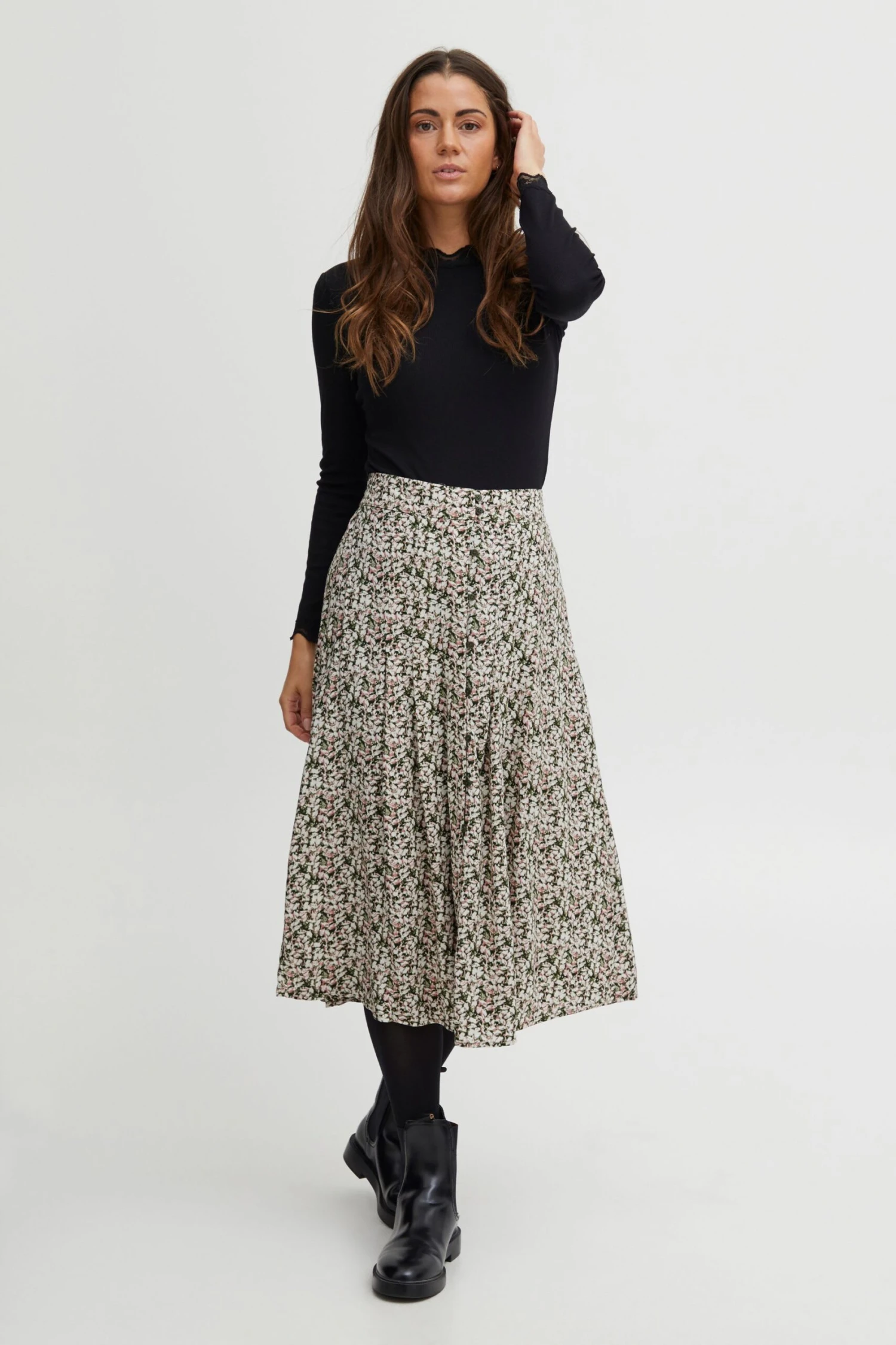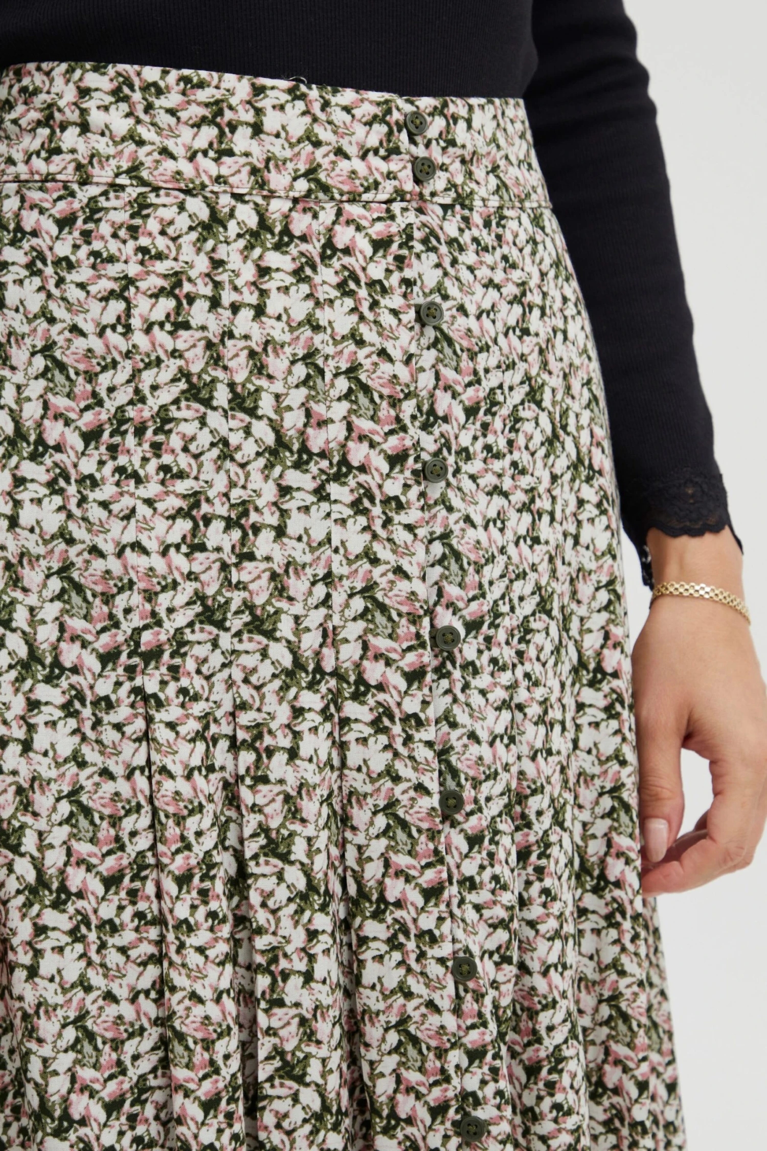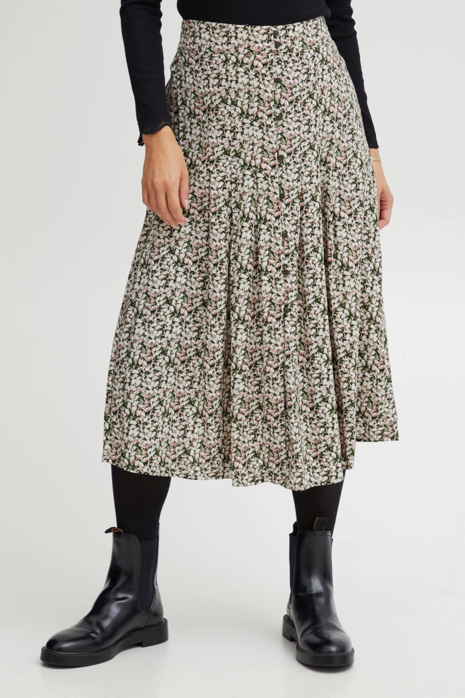 DETAILS & HIGHLIGHTS: Langer Rock mit Knöpfen, Regular-Fit Passform, mit einfarbiger Knopfleiste, angenehme Qualität, leichter Stoff, knieumspielend, unifarben, mit Bundfalten