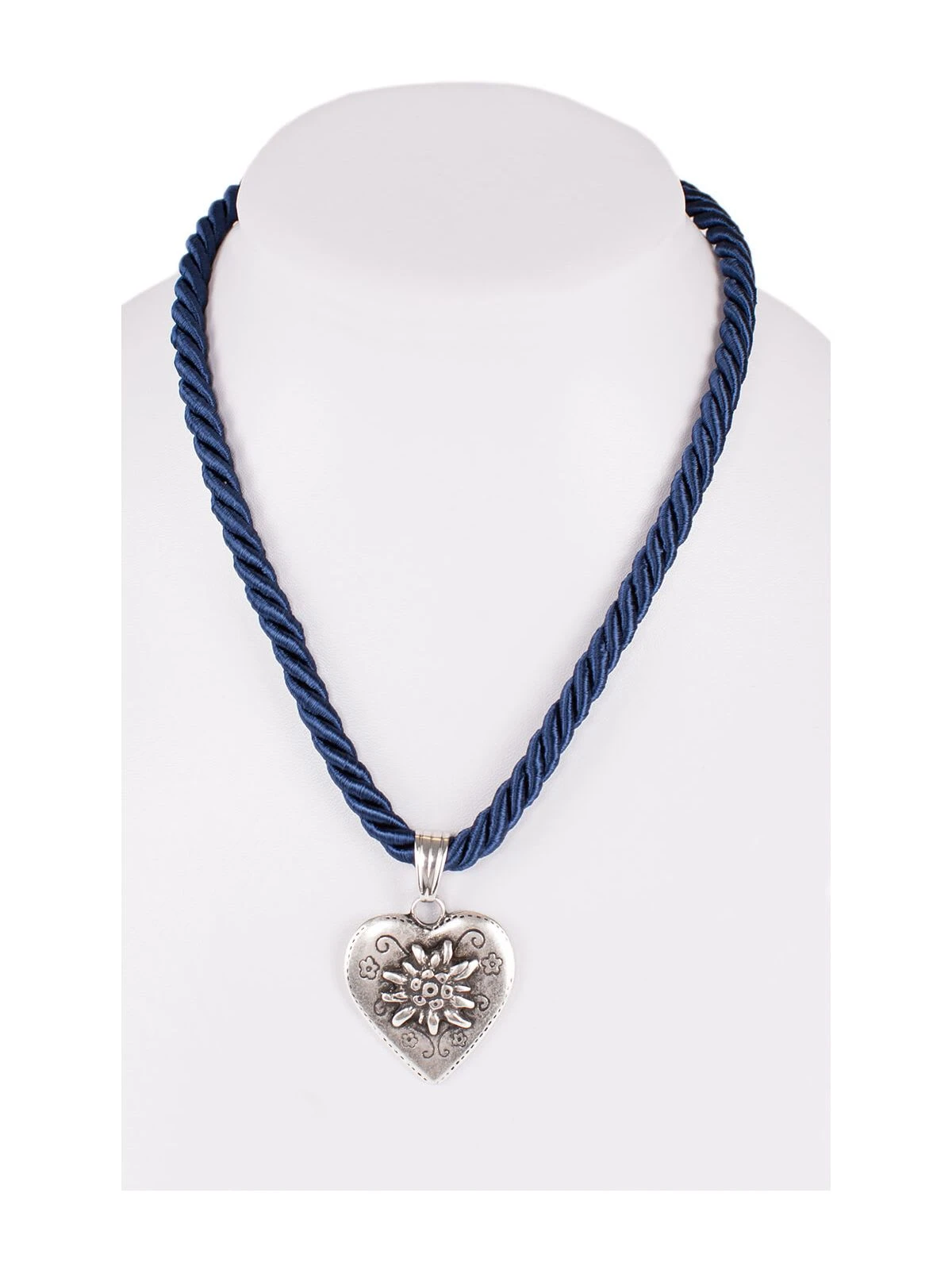 Halskette K100 Kordel Herz Mit Edelweiss Marine