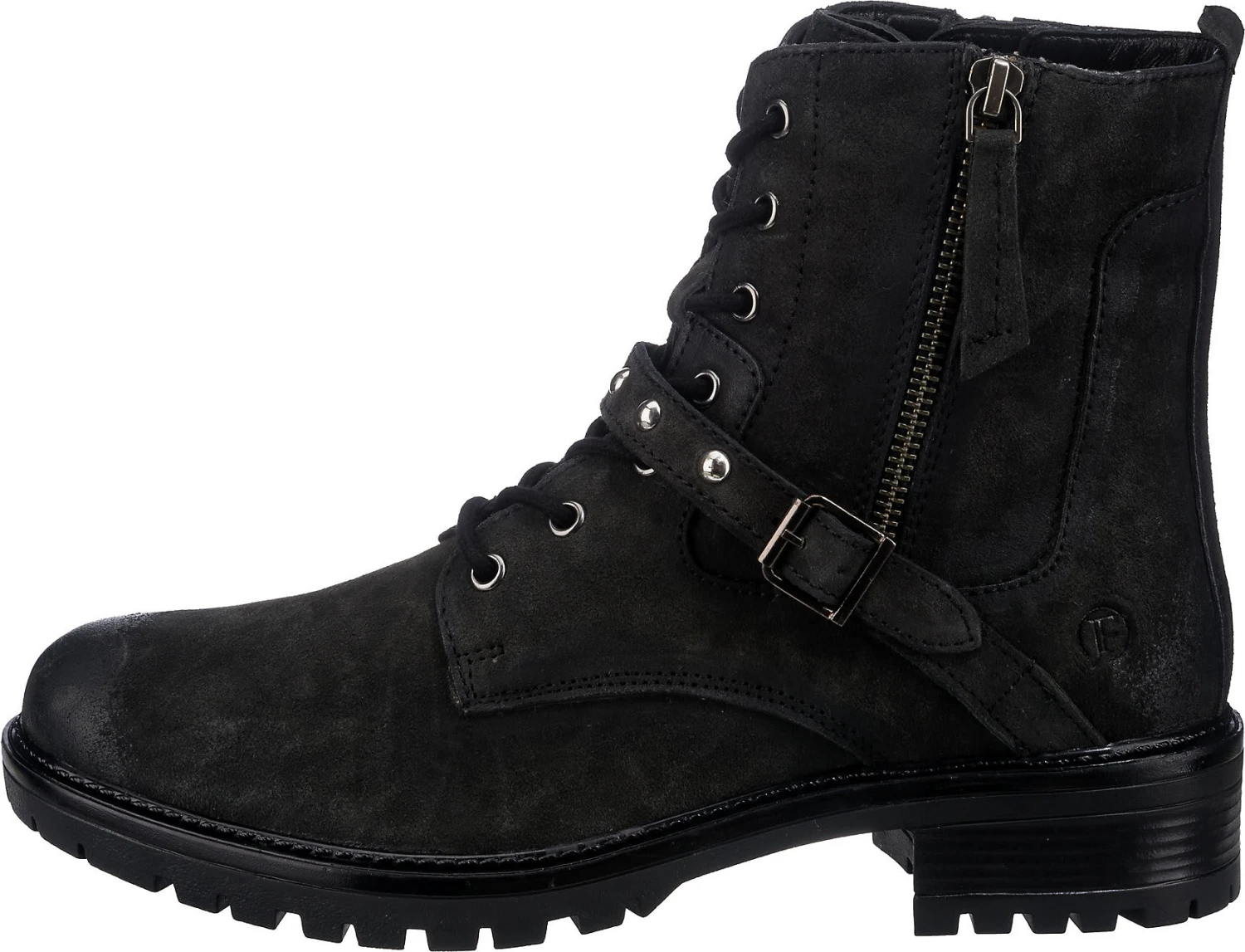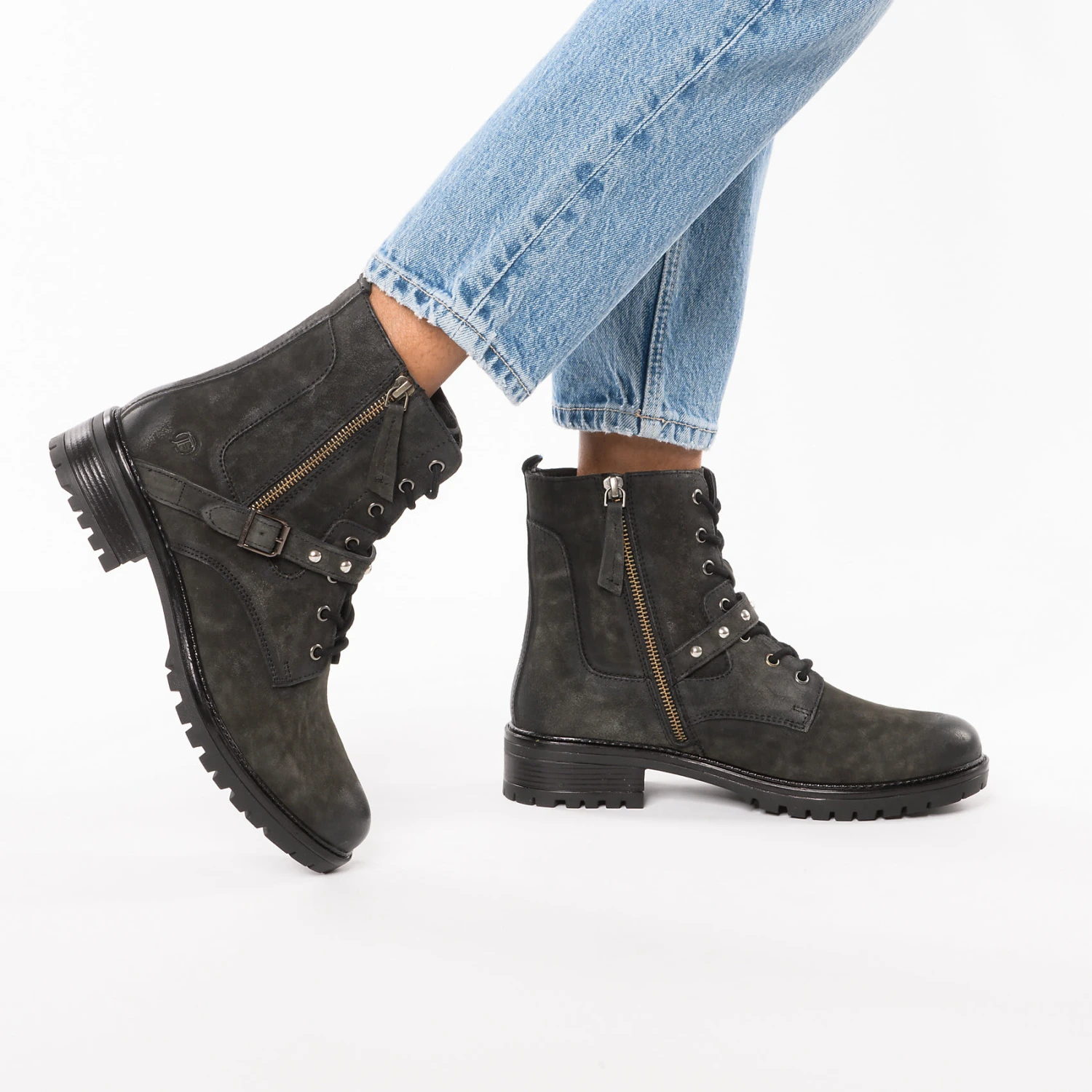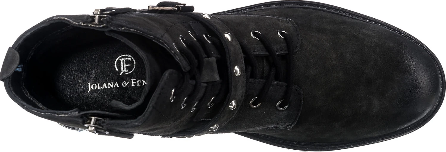 Die stilsicheren Schnürstiefeletten von der Marke JOLANA & FENENA ergänzen jedes Outfit. Der dezente Blockabsatz sorgt für einen modischen Look. Das Schuhpaar ist aus Echtleder. Die Decksohle besteht aus atmungsaktivem Leder, das ein komfortables Trageerlebnis begünstigt. Eine gute Anpassung an den Fuß wird durch den Schnürverschluss gewährleistet, der darüber hinaus durch einen Reißverschluss ergänzt wird.