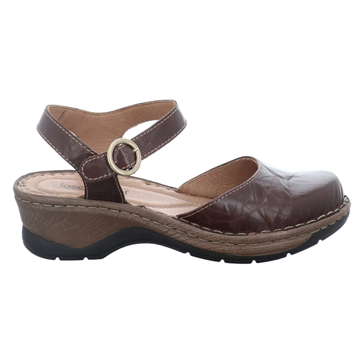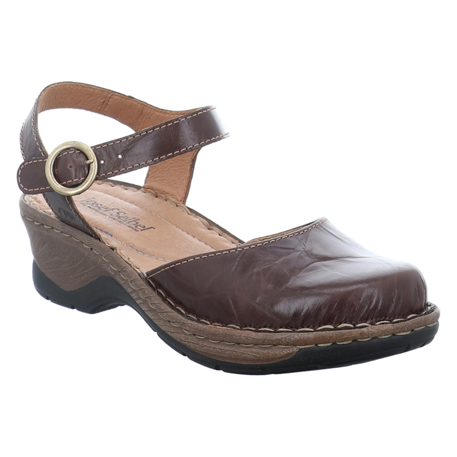 Der bequeme Damen-Clog der Marke JOSEF SEIBEL aus Leder wird von nun an Ihr ständiger Begleiter sein. Die Decksohle aus Leder ist hochwertig verarbeitet und bietet optimalen Komfort. Der Schuh verfügt über eine Weite G, ideal für den ganz normalen Fuß. Der Blockabsatz hat eine Absatzhöhe von 4,5 cm. Die stabile Laufsohle ist aus PU, diese Sohle ist leicht, weich, flexibel und biegsam. Die geschlossene Schuhspitze macht den Schuh elegant am Fuß. Der Schuh ist perfekt geeignet fürs ganztägige Tragen, da Tragegefühl, Komfort und Verarbeitung so ausgerichtet sind, dass Sie den Schuh den ganzen Tag über ohne Probleme tragen können.