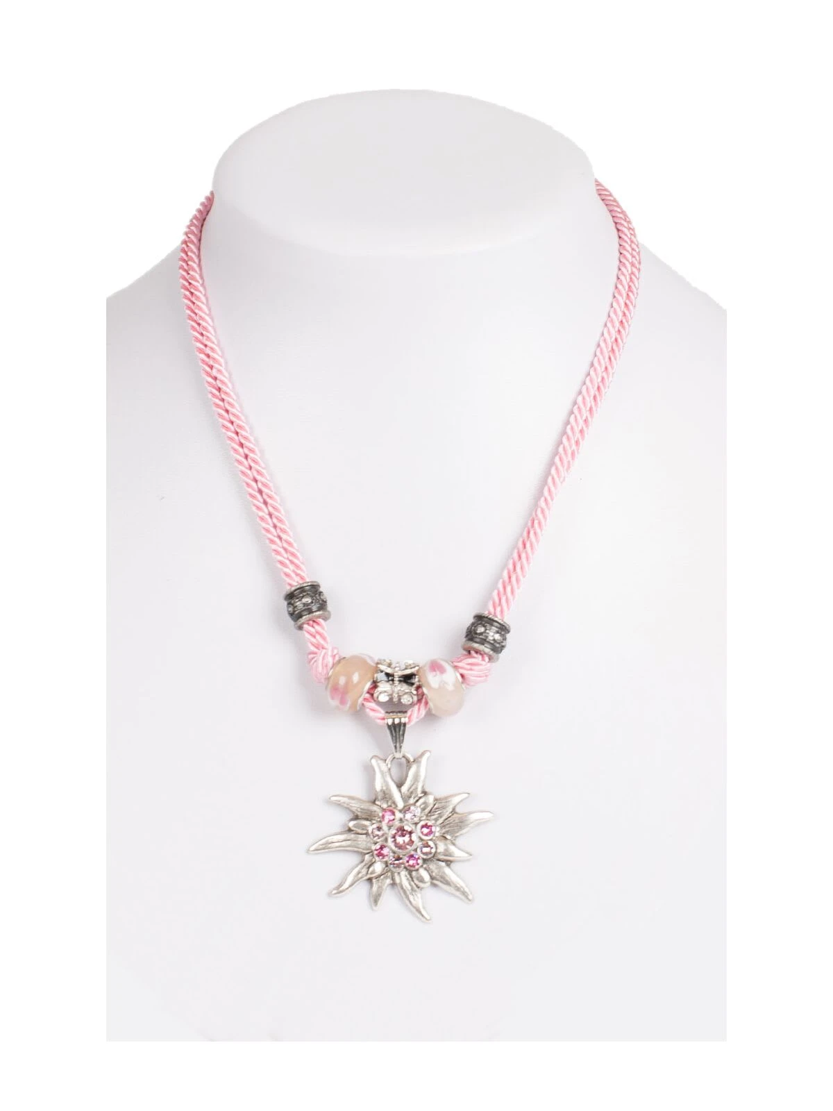 Kette 12702 Mit 2facher Kordel Und Edelweiss, Rosa