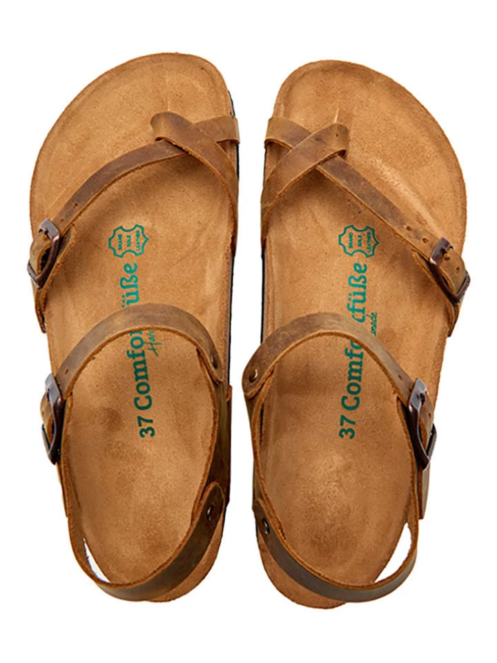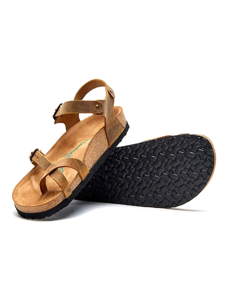 Leder-Zehensandalen In Hellbraun
