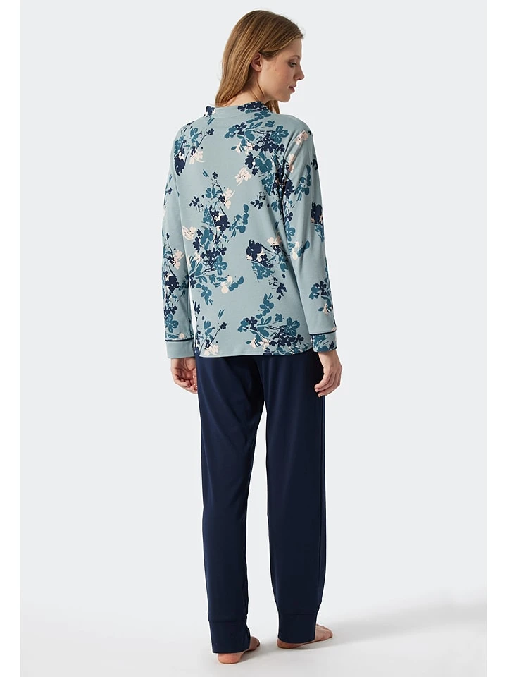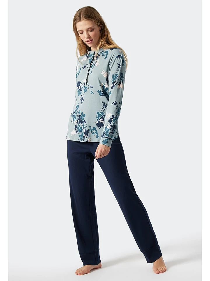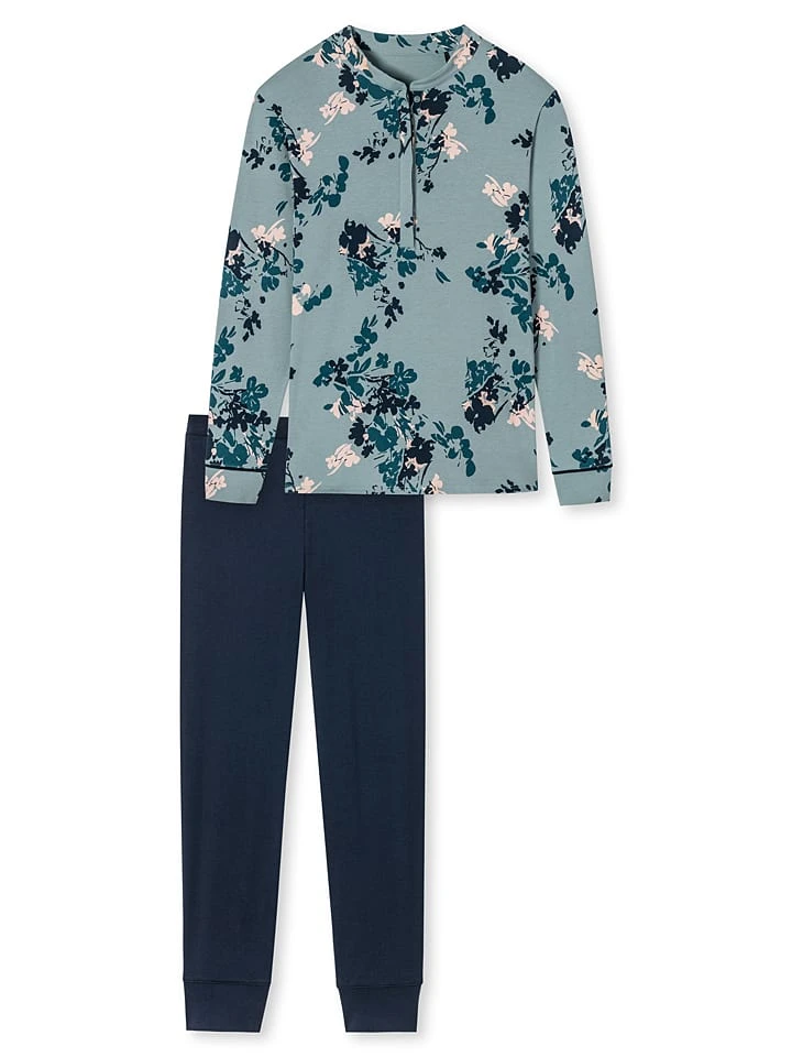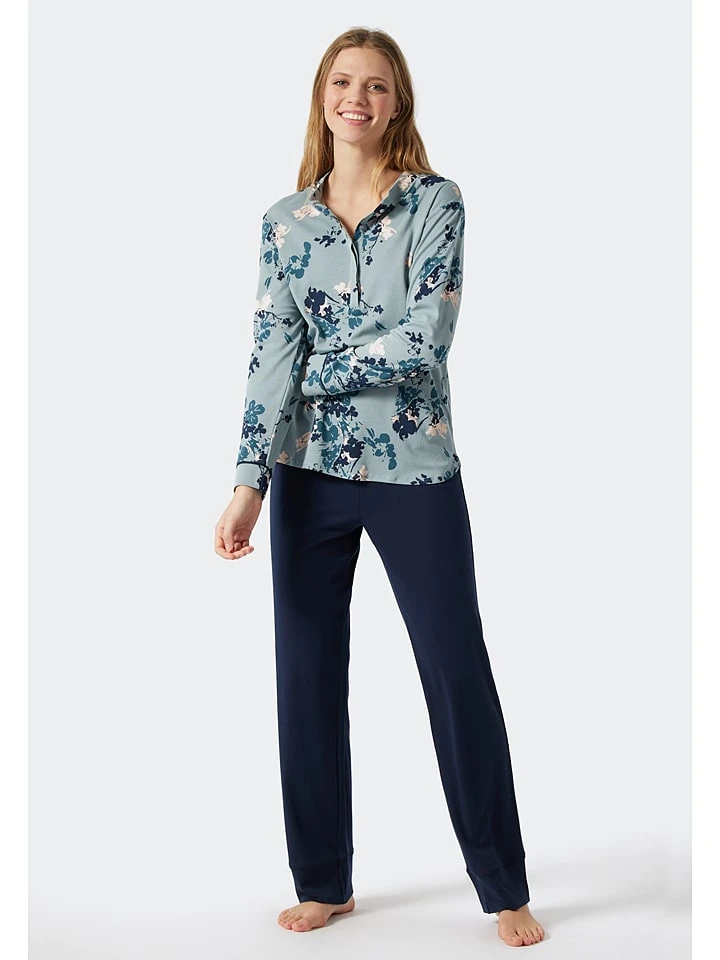 Schiesser Pyjama In Hellblau/ Dunkelblau