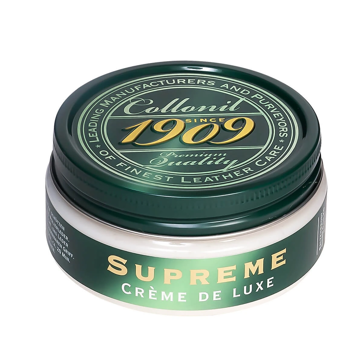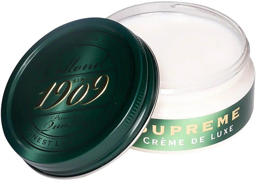 Die 1909 Crème de Luxe ist mit wertvollen und natürlichen Wachsen und Ölen angereichert und ist somit ideal geeignet für die Schuhpflege mit den höchsten Ansprüchen. Sie schützt und verwöhnt alle Glattleder und bietet dabei optimale Farbauffrischung und perfekten, farbtiefen Glanz.