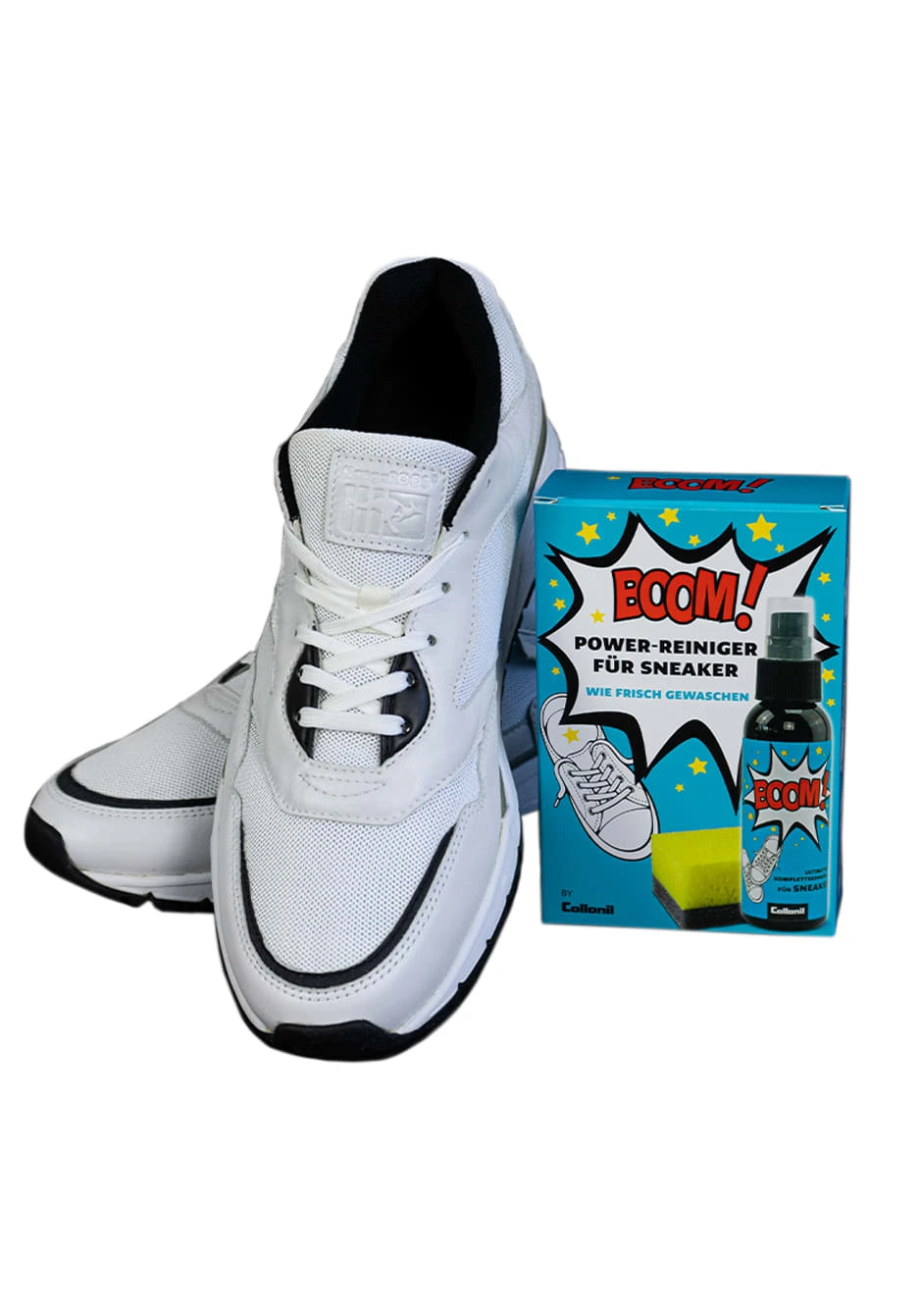 BOOM! Die Ultimative Komplettreinigung mit der Magic 4 Formel für alle Sneaker. Die Magic 4 Formel bringt alle Materialien von Wildleder, Mesh, Textil, Leder, klar auch Sohlen und Sohlenränder und natürlich auch die Senkel und Farben ins Reine. BOOM! kann mehr und ist die einfachste und coolste Lösung die es gibt. In der praktischen Vorteilsbox mit Schwamm.
