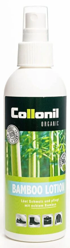 Kompromisslose biologische Lederpflege die auf Nachhaltigkeit und Umweltverträglichkeit setzt. Dafür steht die Marke Collonil Organic und somit auch die Bamboo Lotion als Hauptdarsteller in dieser Serie. Sie ist ein absoluter Topseller, löst Verschmutzungen und versorgt Glatt- und Rauleder sowie textile Materialkombinationen mit wertvoller Feuchtigkeit. Der zugesetzte natürliche Bambusextrakt verhindert wiederum Feuchtigkeitsverlust und schützt somit das Material vor dem Austrocknen. Die flüssige Bamboo Lotion ist im Sinne der Umweltverträglichkeit ohne Treibgase produziert und mit Pumpzerstäuber ausgestattet.