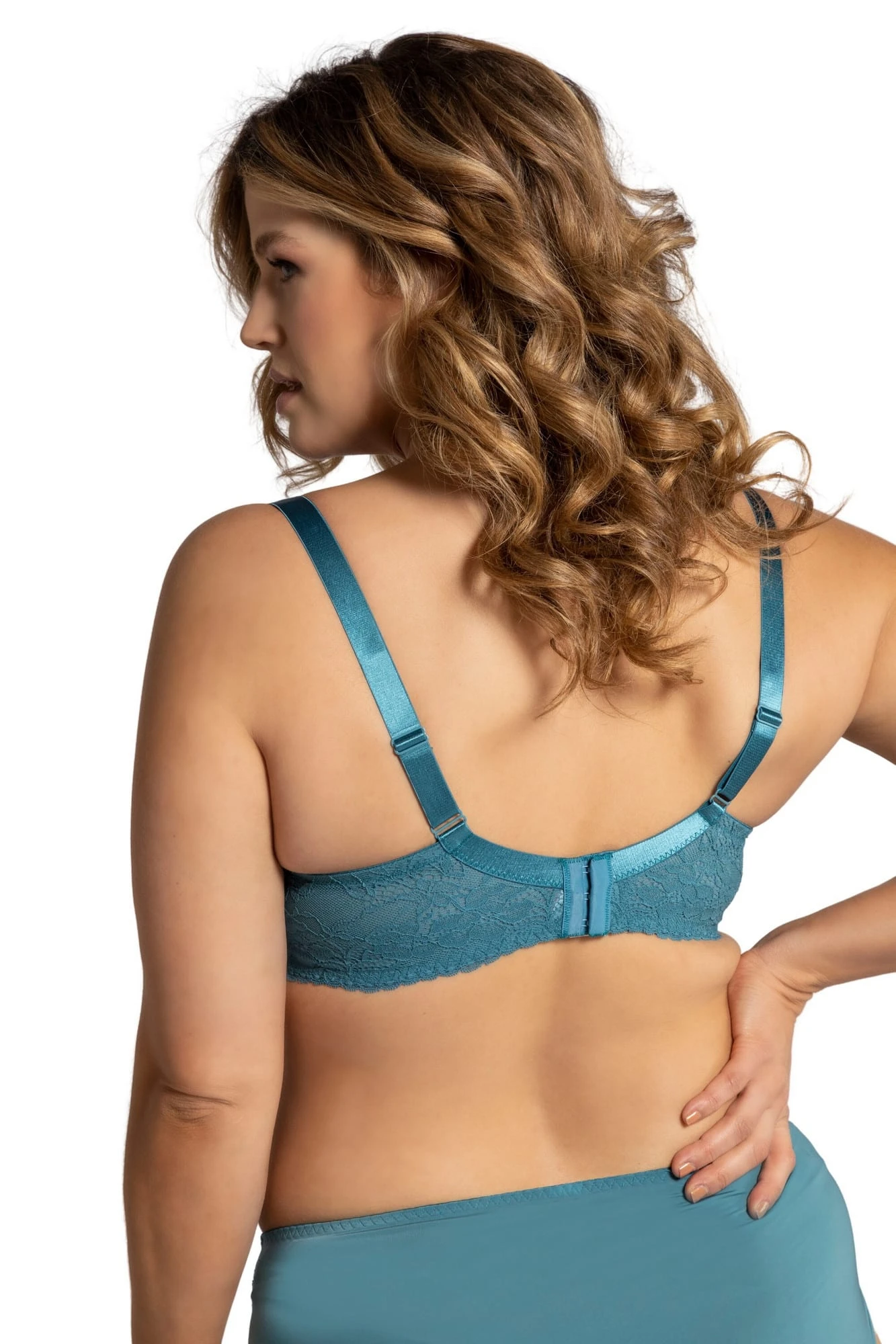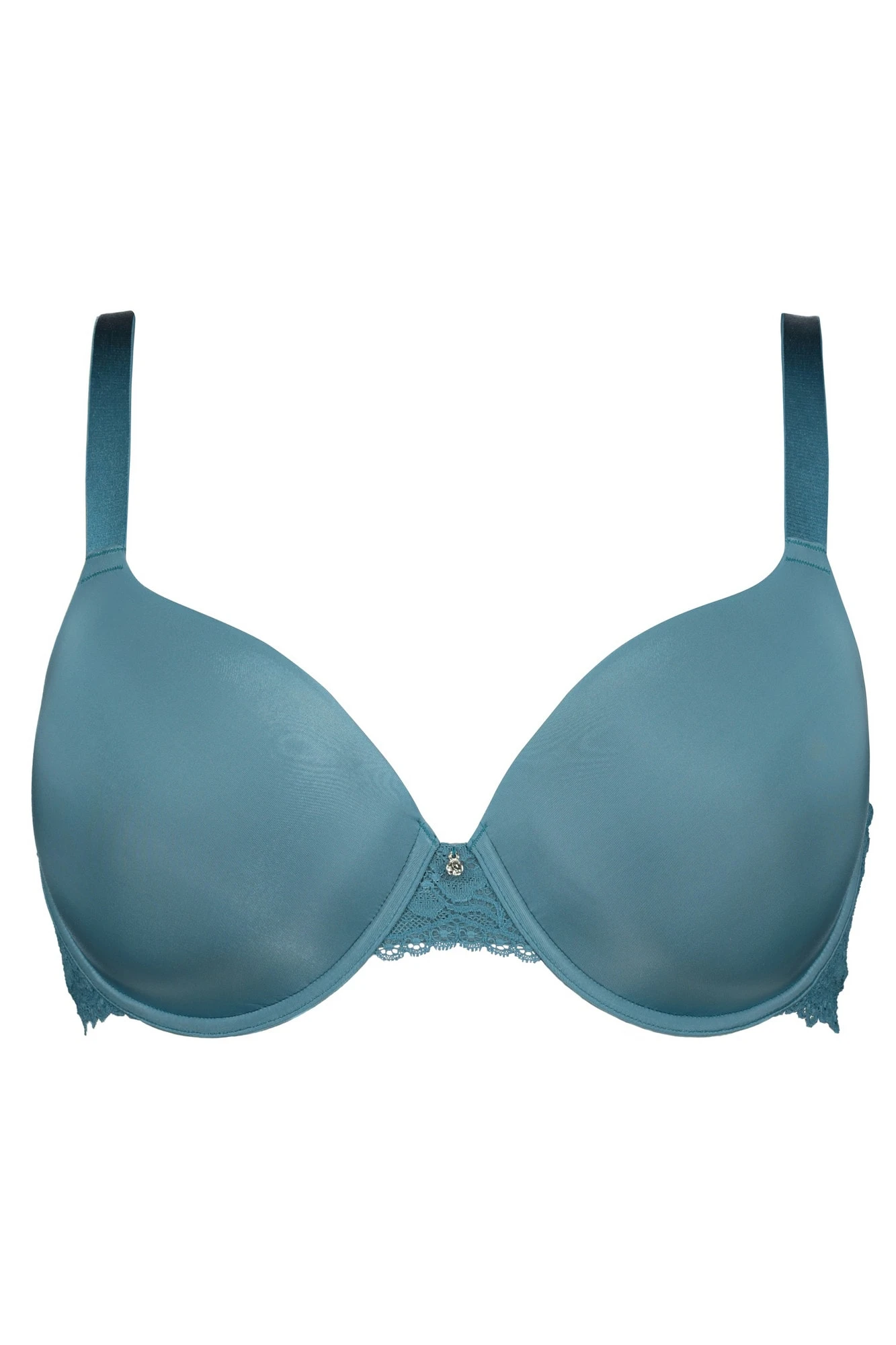 Bügel-BH mit Softcups und Spitzenkanten. Unser Model ist 1,77 m groß und trägt Größe 85 D.