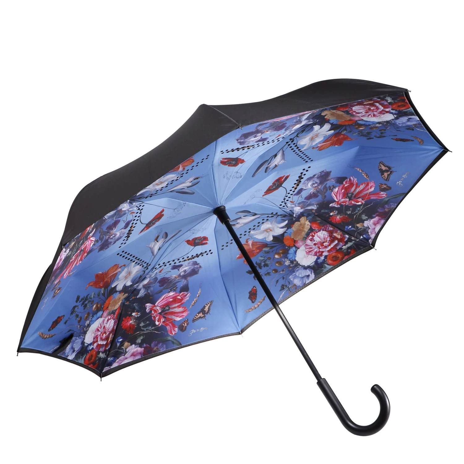 unten, nicht wie üblicherweise von unten nach oben. Die innovative zweilagige Konstruktion ermöglicht eine Upside-Down-Technik. Beim Zusammenfalten des Schirms wird die nasse Außenseite nach innen gezogen und die Regentropfen werden eingeschlossen – kein lästiges Tropfen mehr!Jan Davidsz de Heem war einer der größten Blumen- und Früchtemaler der